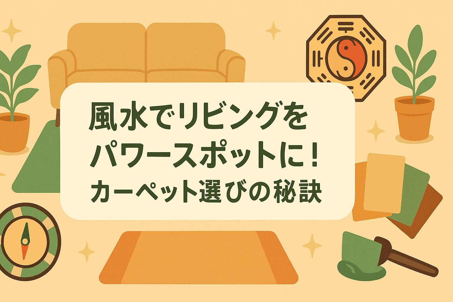 リビングを風水で良くしたいけど、まず何から始めればいい? 一番簡単なのはカーペット。方角に合う色と素材を選んで敷くだけで、部屋の気が整うよ。   方角に合うカーペットの色が決められない。 素 ...