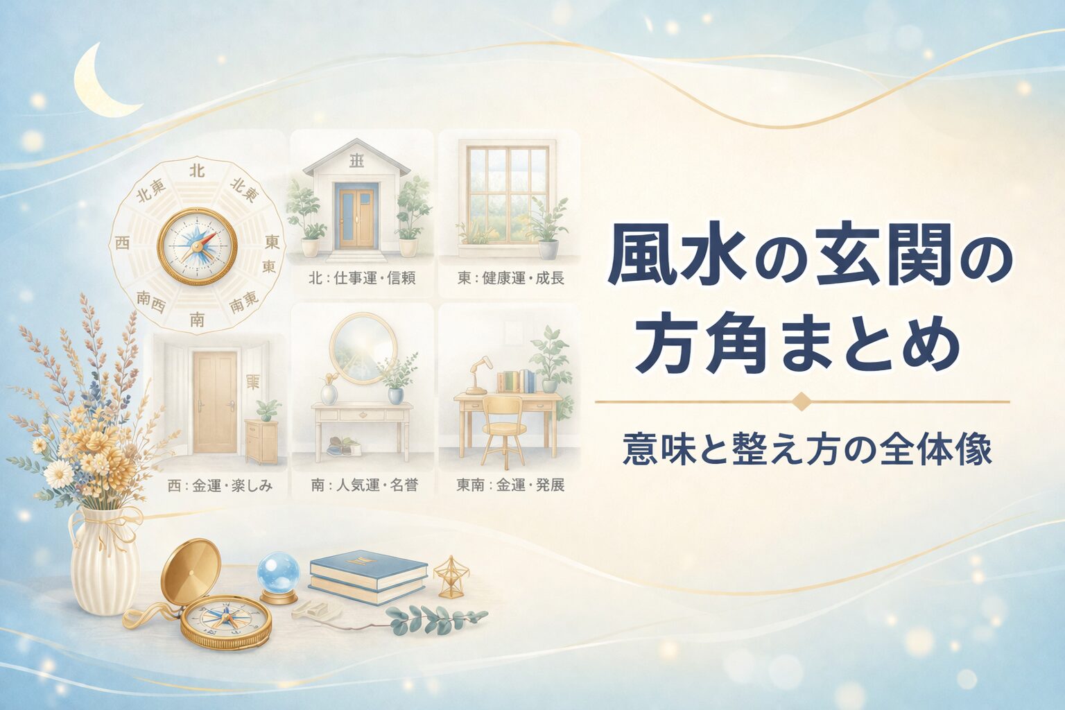 最初に読むページ。全体像と次の読み方がわかります。 - 風水の方角完全ガイド|意味・NGパターン・置くと良い物をまとめて解説