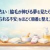 夢占い的には、体毛の夢が「積み重なった負担」や「整えたい気持ち」を示すとされることがあります。